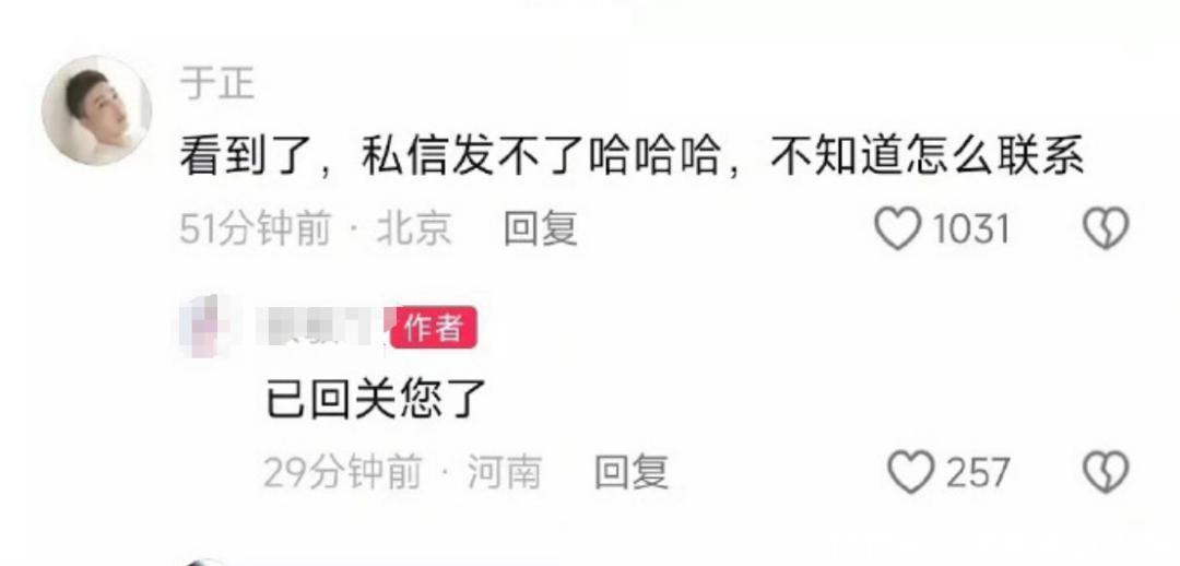 跟着热度飙升,不少网友主动@于正,提议其签约培养。7月13日,于正在七七母亲的抖音辩驳区留言称“私信发不了,不知谈奈何估量”,七七母亲立时回关,两边诞生初步估量。